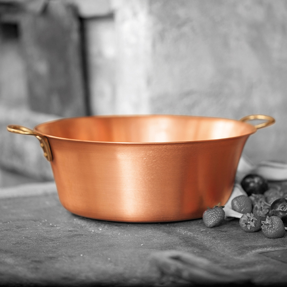 Das Geheimnis der feinen Pâtisserie heißt Kupfer! Noch heute verzichten die hochwertigen Hersteller dieser Köstlichkeiten nicht auf Kupfer. Deshalb bieten wir Ihnen für die Herstellung dieser Speisen Rührschüsseln und eine induktionsfähige Marmeladenschüssel aus reinem Kupfer.