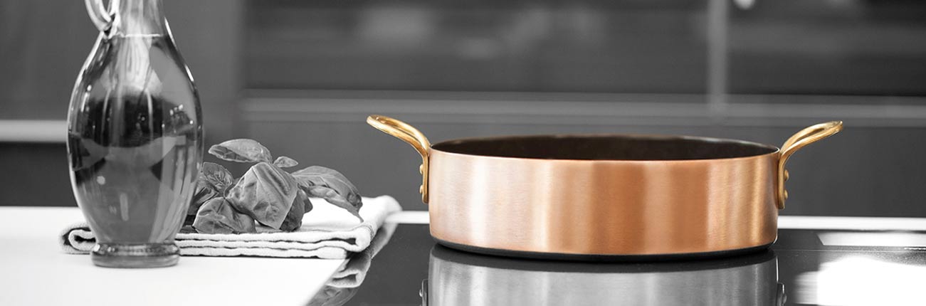 Unserer Manufaktur ist es gelungen, Kupferkochgeschirr nicht nur induktionsfähig zu machen, sondern mit unserer "Premium CeraSigno Versiegelung" auch gleichzeitig die herausragenden Antihafteigenschaften einer modernen Keramikversiegelung für das Kochen mit Kupfer zu ermöglichen. So verbinden wir das traditionelle, überaus wäremleitfähige Kupferkochgeschirr mit den modernsten Ansprüchen ambitionierter Köche.